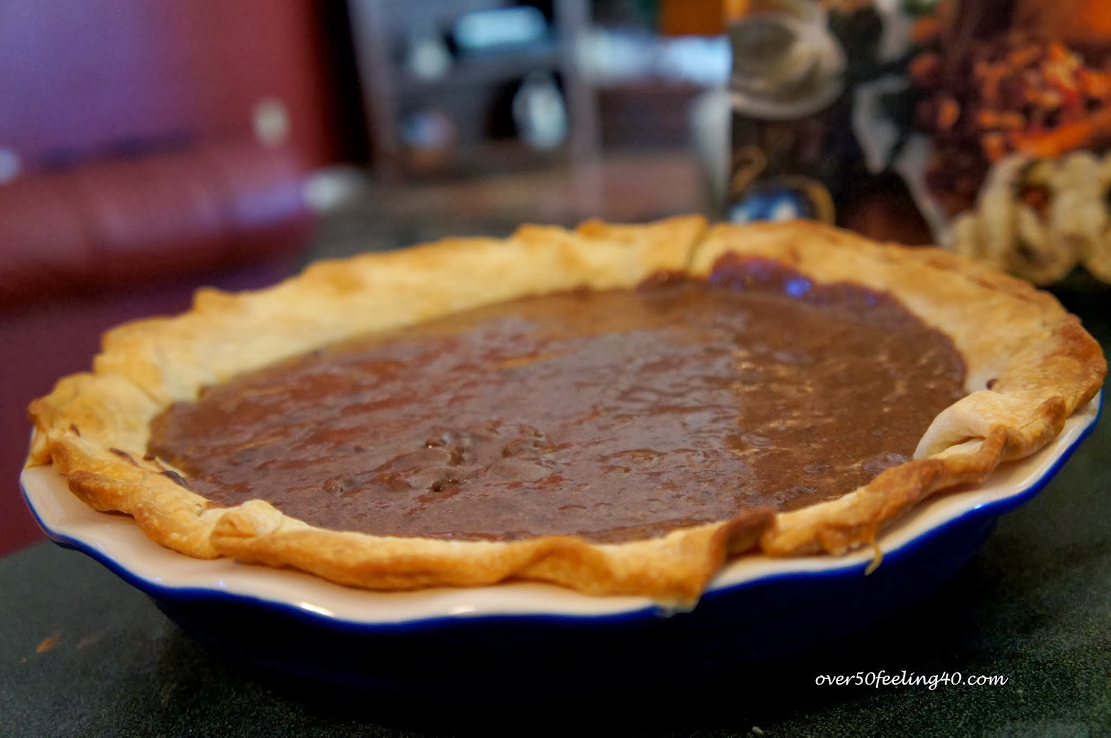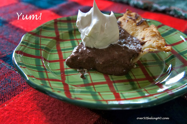 When it comes to holiday desserts, my family does not mind a change or two, as long as the selections include CHOCOLATE! We are a chocolate obsessed family...no trying to hide it! So, this year, we enjoyed this delicious pie....